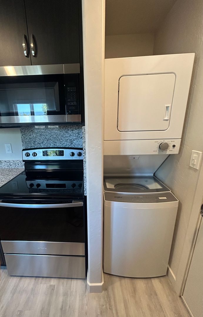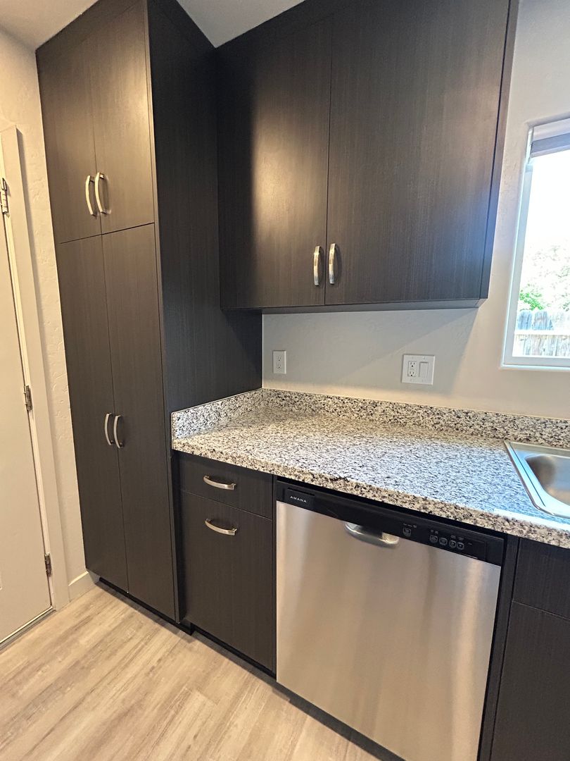 Experience the best of modern living in this brand new 440 sq ft studio-style Accessory Dwelling Unit (ADU). Thoughtfully designed to maximize every inch of space, this open-concept layout offers a seamless flow. Inside you will find an abundance of natural light, highlighting the premium finishes and clean lines throughout. The versatile living area effortlessly transitions into a cozy sleeping space. The sleek, functional kitchenette is equipped with essential appliances and ample storage. The dishwasher, stove, and microwave are provided and the tenant is responsible for the refrigerator. The washer and dryer are also included in the unit!