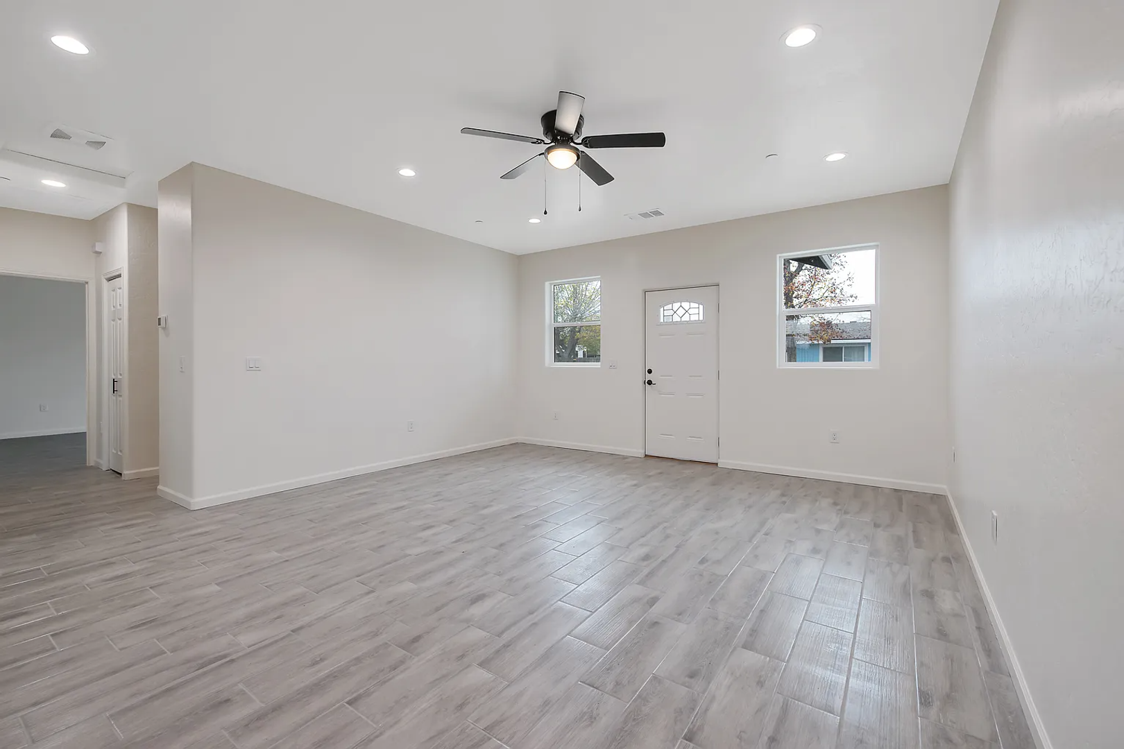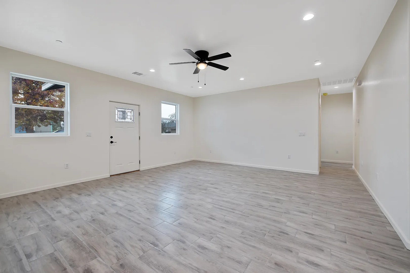 Experience the pinnacle of upscale living in this stunning, brand-new construction duplex located in the heart of Hanford! This unit is a 2 bedroom and 2 bathroom. Each unit features an open-concept floor plan highlighted by premium luxury flooring. You will love the kitchen that boasts high-end quartz countertops and a full suite of brand-new stainless steel appliances. A standout feature of this property is the owned solar system, offering massive utility savings and energy efficiency year-round. The intelligent architectural design separates living quarters by an attached 1-car garage, ensuring no shared living walls for maximum privacy. The home showcases quality craftsmanship, including modern HVAC systems and convenient in-unit laundry hookups. Situated just minutes from Hanford’s vibrant downtown dining and shopping, this location offers unbeatable convenience for any lifestyle. Be the first to call this high-efficiency, professionally managed masterpiece home.